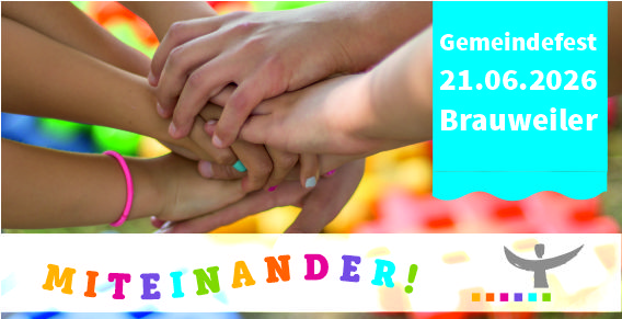 Das diesjährige Gemeindefest feiern wir am 21. Juni 2026 im Ev. Gemeindezentrum Brauweiler. Lassen Sie sich einladen mitzufeiern und das Fest gemeinsam zu gestalten.